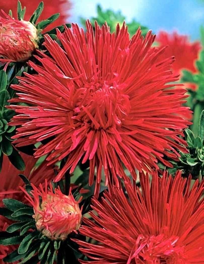 aster chiński igiełkowy czerwony