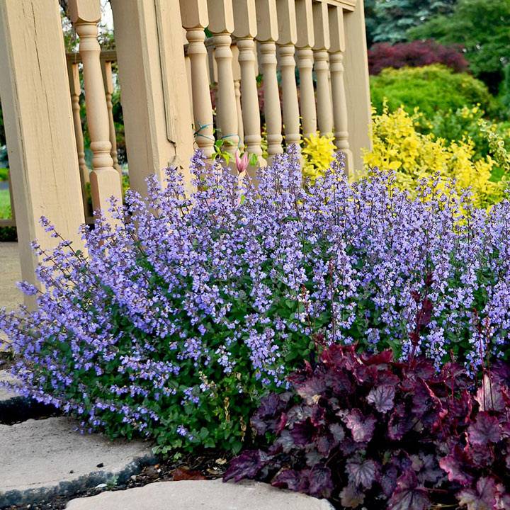 Wysokość roślin 40 - 50 cm. Kwitnie od czerwca do września. Rośliny przycięte latem zakwitają ponownie jesienią. Dzięki dużej ilości olejków eterycznych intensywnie pachnie. Jej zapach jest szczególnie atrakcyjny dla kotów, stąd nazwa kocimiętka.