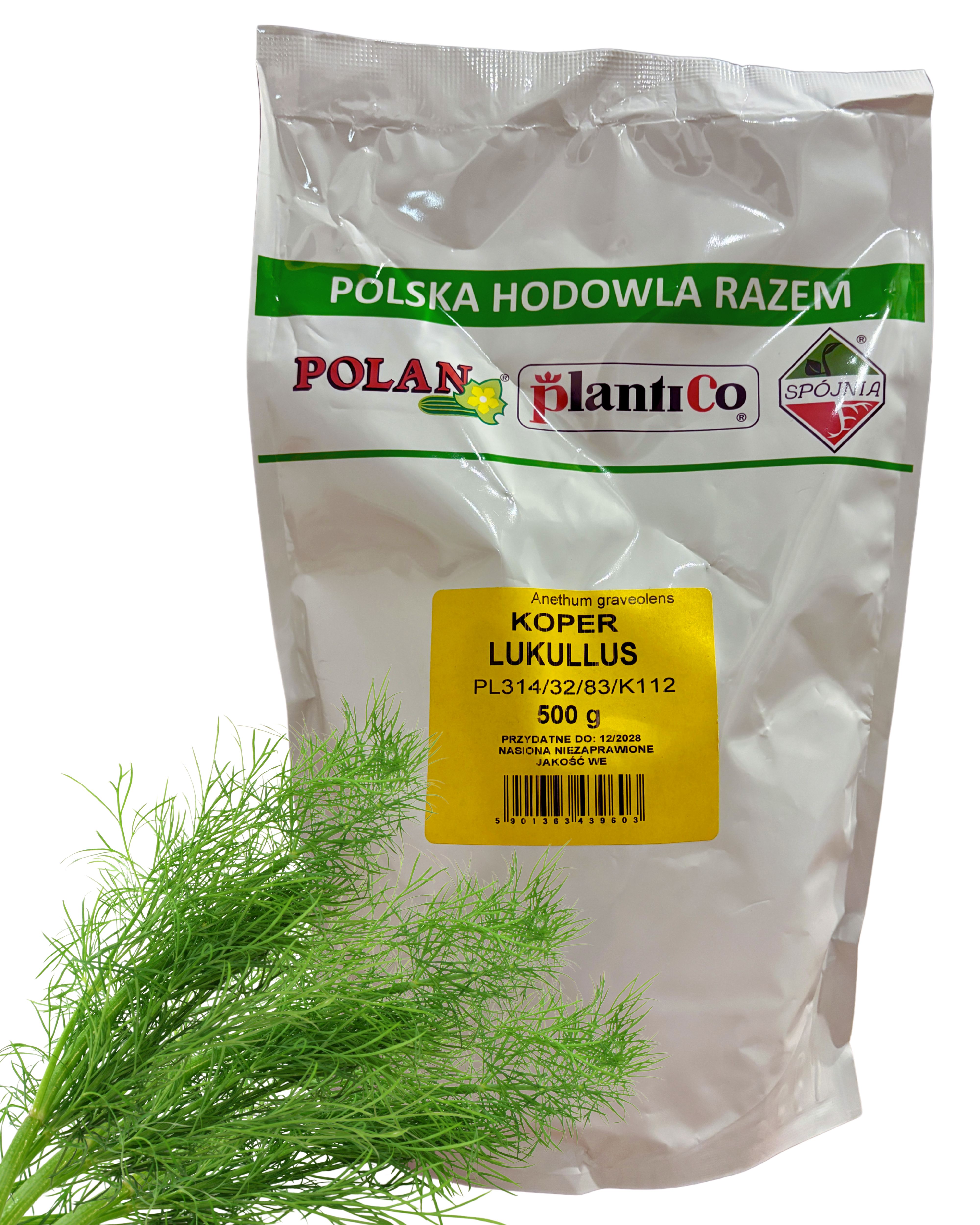 Koper ogrodowy Lukullus to aromatyczna, plenna odmiana, która charakteryzuje się intensywnym zapachem i bogatym smakiem. Posiada gęste, ciemnozielone liście oraz silny wzrost, dzięki czemu jest doskonały zarówno do spożycia na świeżo, suszenia, jak i mrożenia. Idealny do przyprawiania potraw, konserwowania oraz kiszenia.