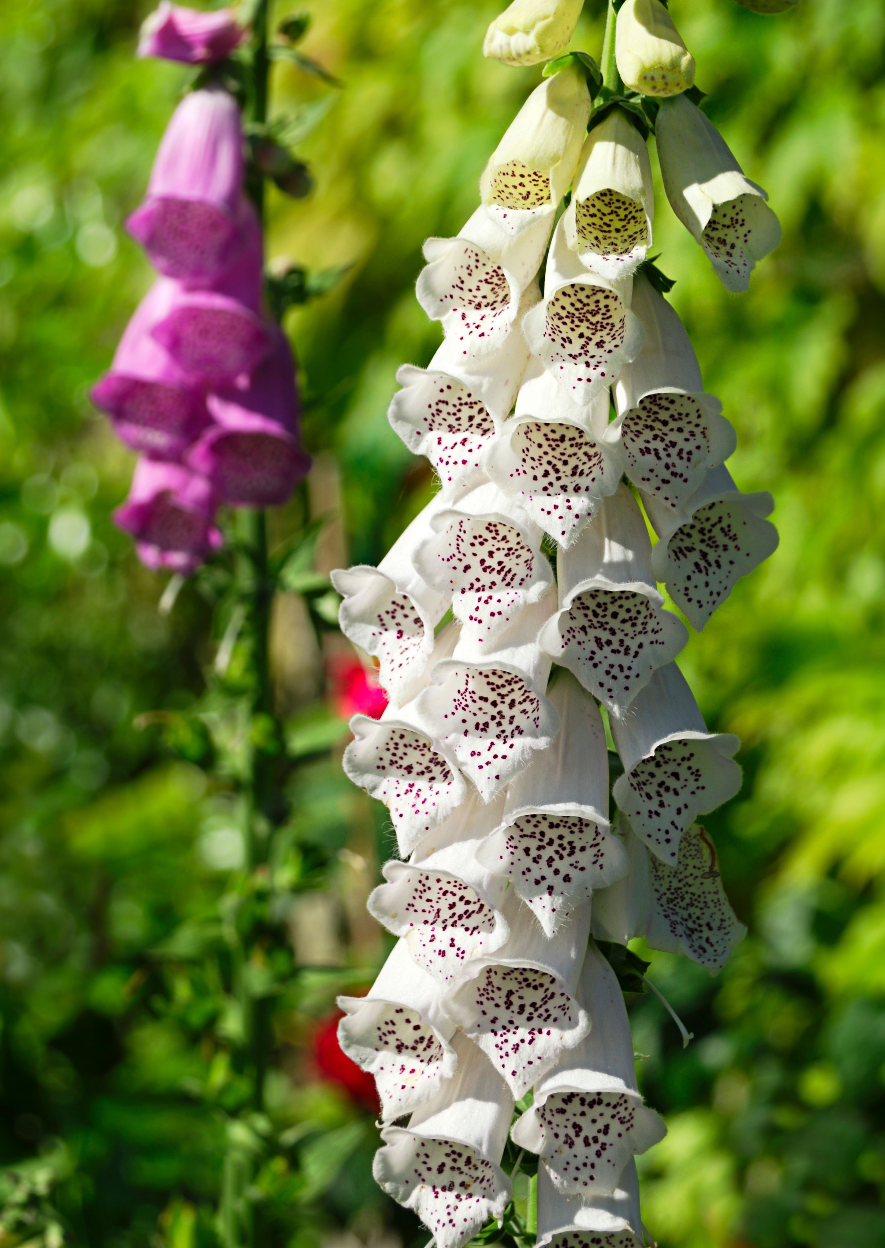 Roślina o prostych, wzniesionych pędach kwiatostanowych zakończonych długim gronem, dzwonkowatych, dużych, zwisających, kwiatów barwy jasnopurpurowej, fioletowej lub różowej z efektownym nakrapianiem w różnych odcieniach. Doskonała do ogrodów naturalistycznych, do tworzenia grup ogrodowych i tła dla innych roślin.