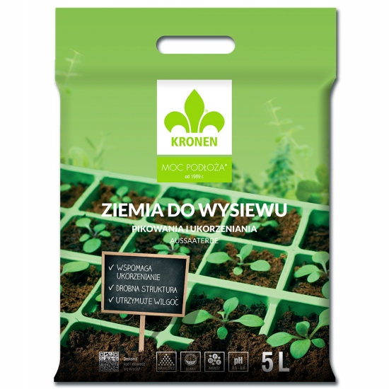 PODŁOŻE ZIEMIA ogrodowa DO WYSIEWU I PIKOWANIA KRONEN 5L wysoka jakość