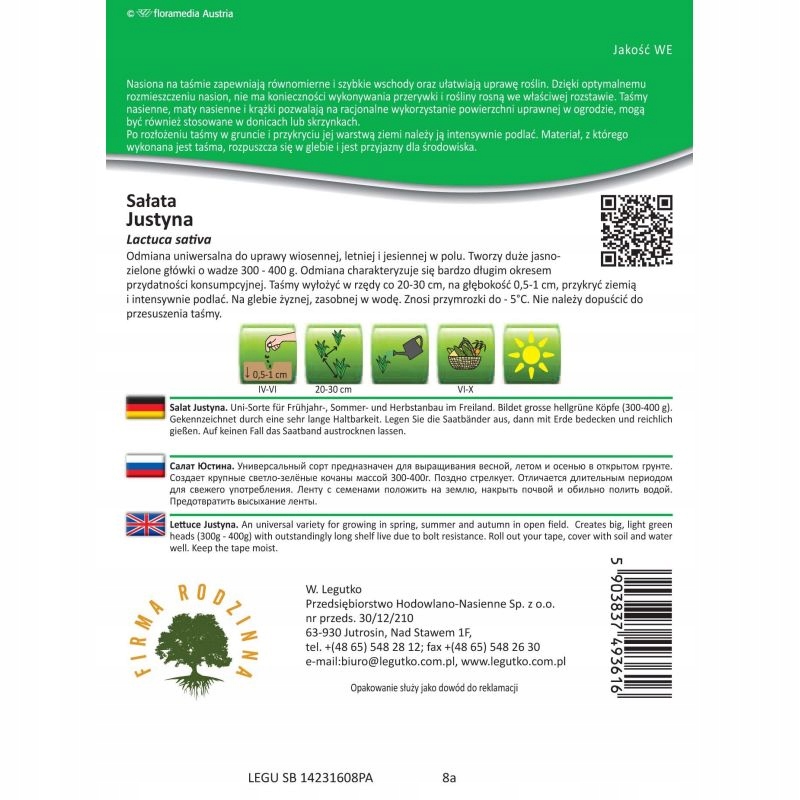 Sałata masłowa Justyna - nasiona na taśmie 7m