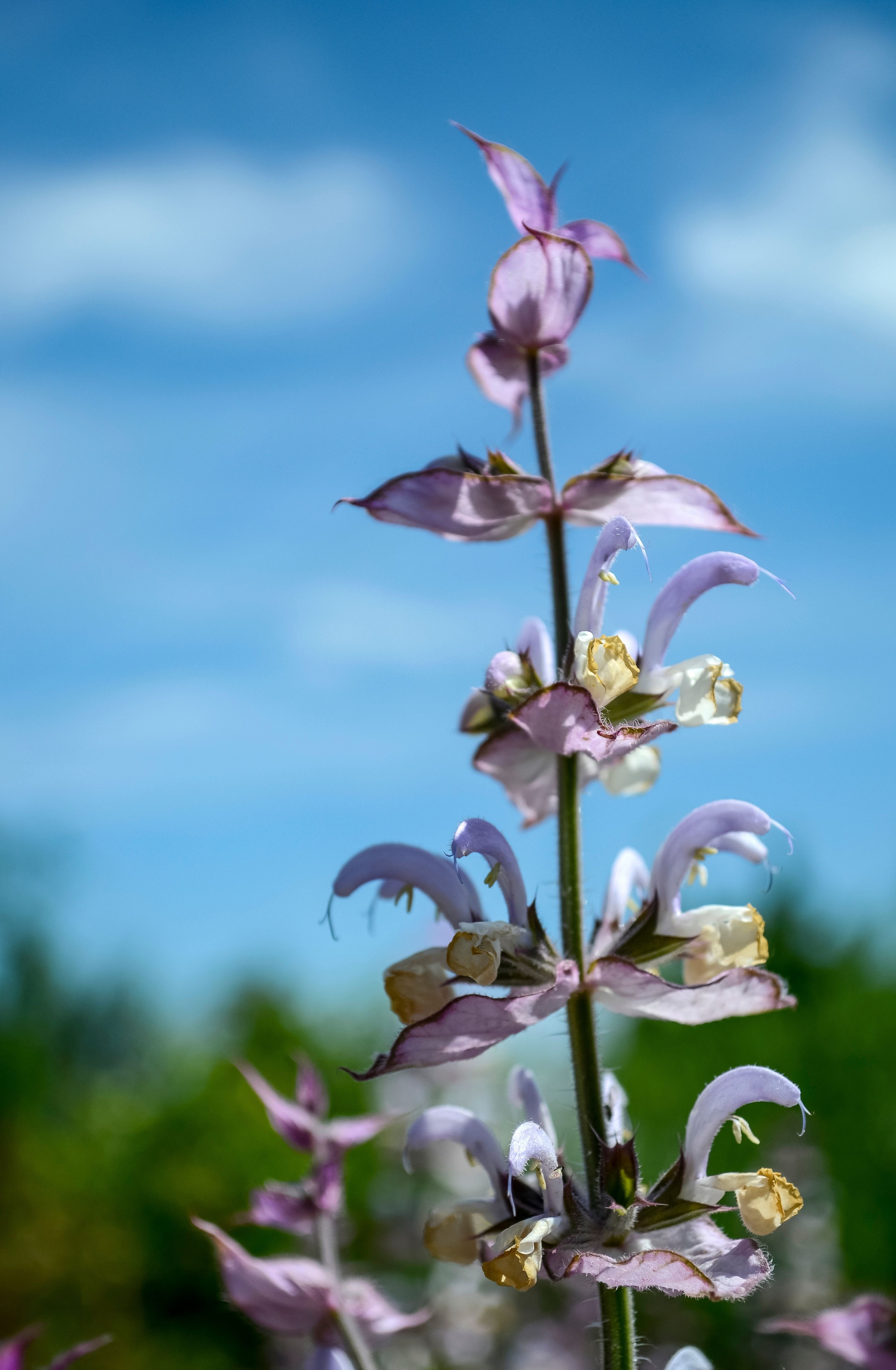 Pędy kwitnącej szałwii muszkatołowej przyjmują postać gęstych, strzelistych kłosów, wypełnionych wdzięcznymi, pastelowymi kwiatami. Efektowny pokrój, znaczne rozmiary oraz szerokie spektrum zastosowań – dekoracyjne, przyprawowe i lecznicze – czynią z tej rośliny gatunek godny uwagi.